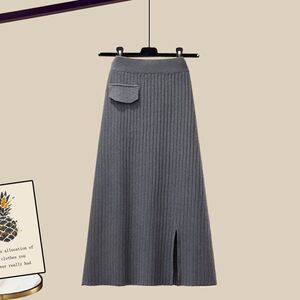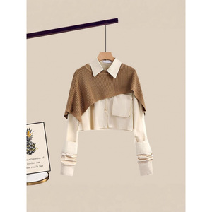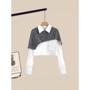 大码女装秋季套装女2025新款宽松披肩衬衫高腰针织半身裙三件套潮