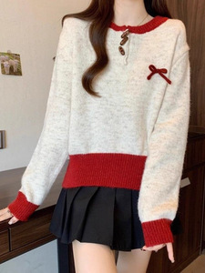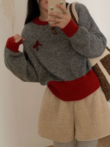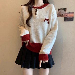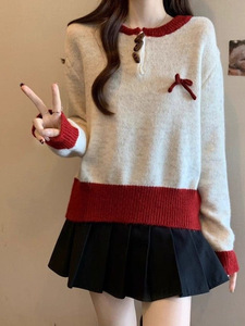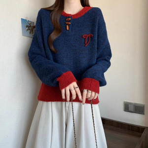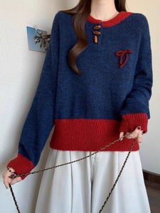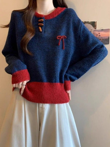 复古撞色松弛感针织毛衣女2025秋冬季新款慵懒风气质宽松显瘦上衣