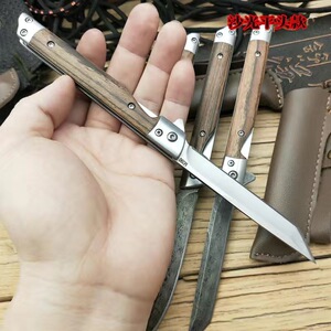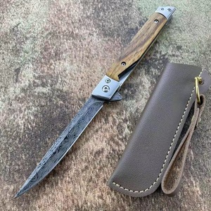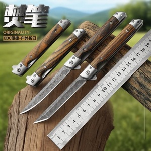 厂家直销大马士革纹折叠刀神笔折刀户外实木折刀野外露营装备小刀