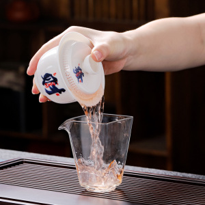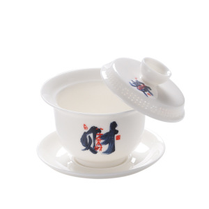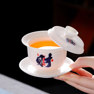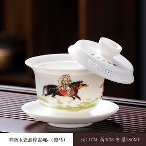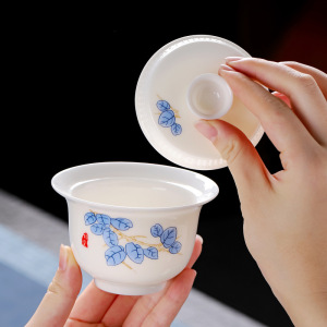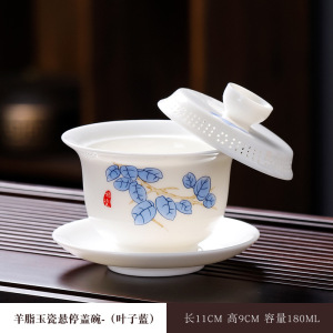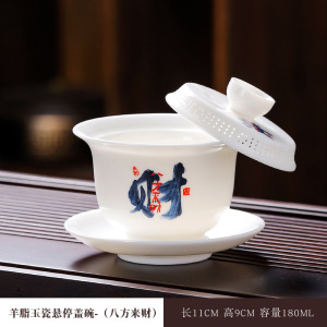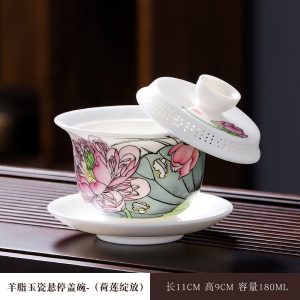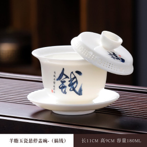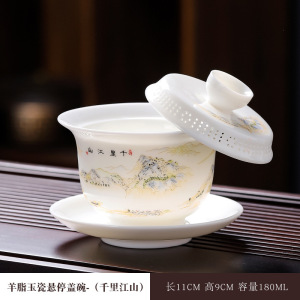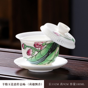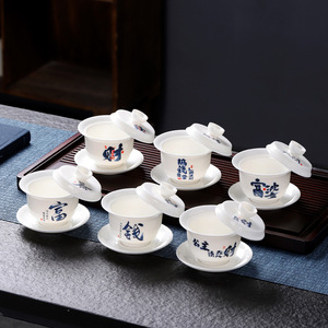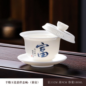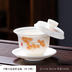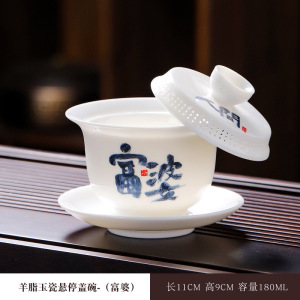 羊脂玉悬停盖碗家用三才敬茶碗防烫泡茶器茶杯开业伴手礼加印LOGO