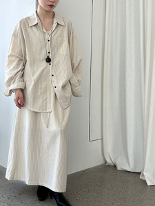 NS 韩系简约棉麻条纹衬衫+同色系半身裙女25秋季新款两件套8513