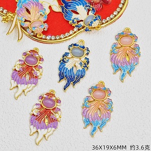 沙金彩滴油珐琅彩大锦鲤吊坠仿玉石复古DIY古风耳饰手链项链挂坠