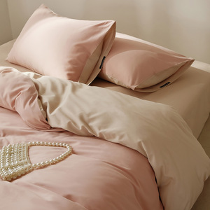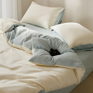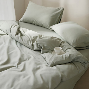 a类长绒棉100支磨毛四件套简约纯色床单被套纯棉秋冬床上用品