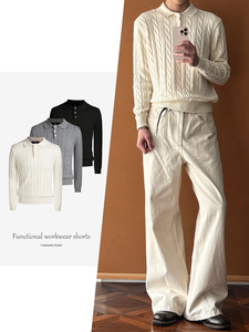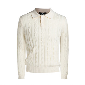 【CSMY】Xanvas绞花polo领新疆长绒棉合身正肩长袖针老钱风t恤