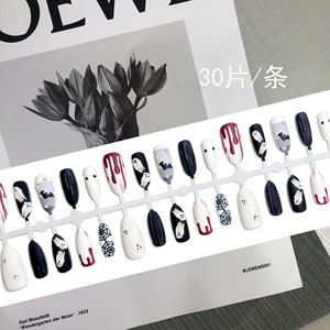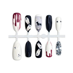 跨境外贸ins欧美爆款穿戴甲nails黑白幽灵万圣节磨砂辣妹美甲贴片