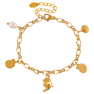 新款钛钢海洋系列珍珠海螺吊坠手链海豚镀真金欧美ins风流行首饰