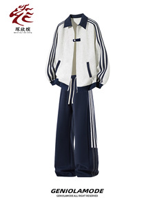 WASSUP联名休闲运动套装男士2025秋季新款潮流两件套男生时尚穿搭