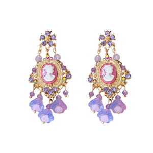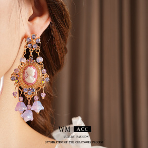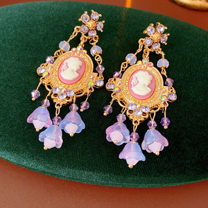 中古vintage镶钻花朵人像流苏耳环时尚百搭耳钉复古宫廷风耳饰女