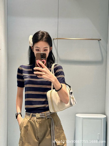 mm25春季新款学院风翻领条纹针织短袖南油高版本