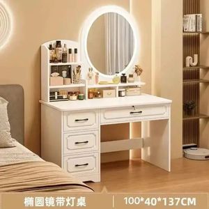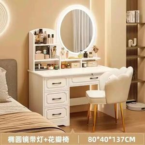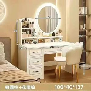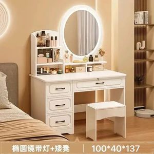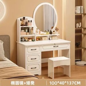 【四抽圆镜+锁+梳妆凳】100暖白色☆✓