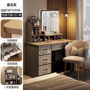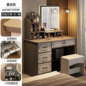 【四抽方镜+LED灯+梳妆凳】意式灰☆✓