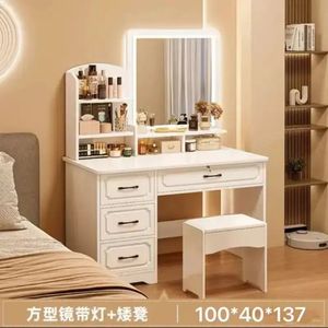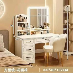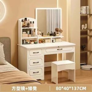 【四抽方镜+锁+梳妆凳】100暖白色☆✓