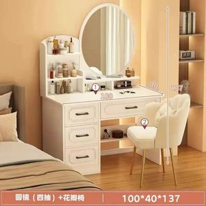 【四抽圆镜+锁+梳妆凳】暖白色☆✓