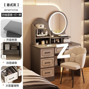 【四抽圆镜+LED灯+梳妆凳】意式灰☆✓