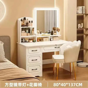【四抽方镜+LED灯+梳妆凳】暖白色☆✓