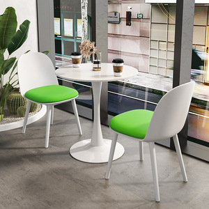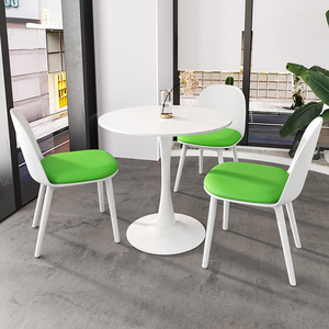 70圆白色圆桌+3椅子【绿色坐垫白椅架】♜✦