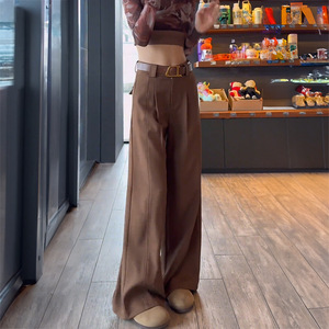 设计感高腰西装阔腿裤女2025秋季新款气质百搭宽松显瘦阔腿休闲裤