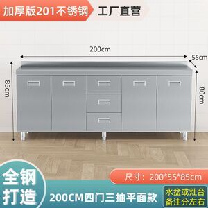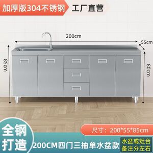 304不锈钢橱柜家用厨房灶台柜碗柜洗菜一体简易不锈钢橱柜餐边柜