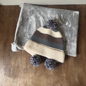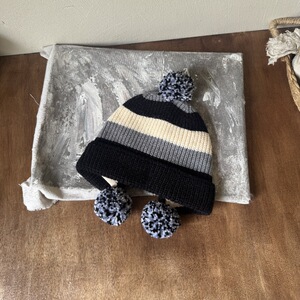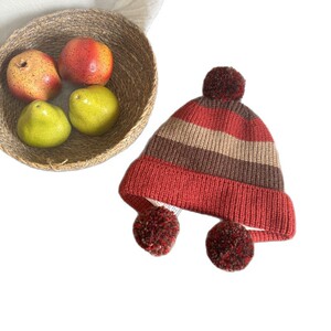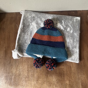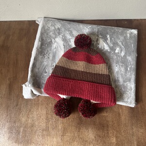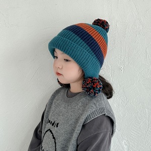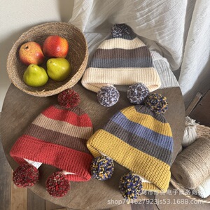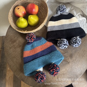 儿童拼色针织护耳帽男女童复古毛球三色户外保暖秋冬新款毛线帽子
