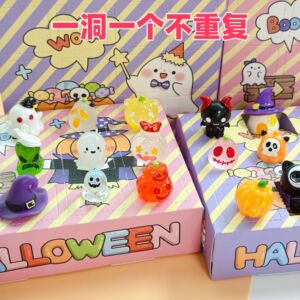 万圣节洞洞乐潮玩盲盒戳戳乐玩具萌粒夜光南瓜幽灵公仔微景观摆件
