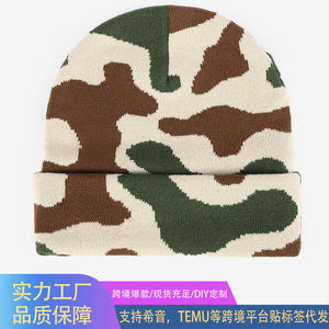 跨境热卖外贸针织帽欧美帽子潮流新款套头蜘蛛网迷彩提花男女帽子