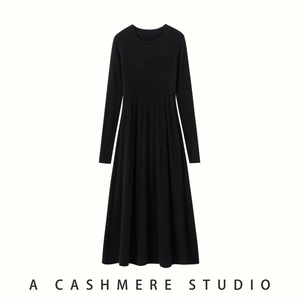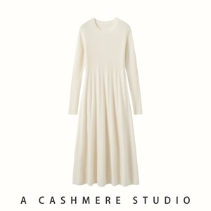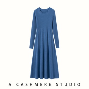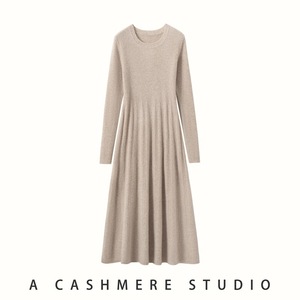 山羊绒裙2025秋冬新款A字连衣裙女长款圆领纯色毛衣过膝显瘦
