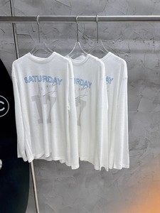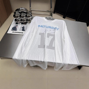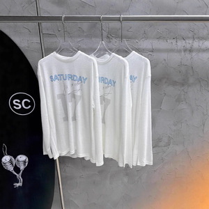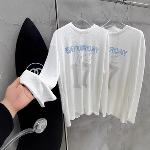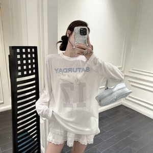 早秋韩系休闲微透薄款防晒衫长袖字母印花T恤女圆领罩衫显瘦慵懒T