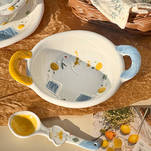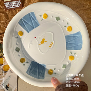 浮小飞鸽餐具小碗家用可爱陶瓷盘子儿童饭碗创意高颜值双耳珩铭
