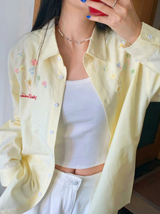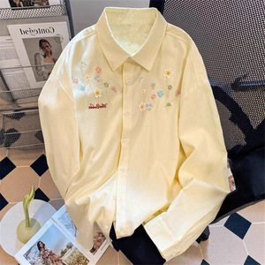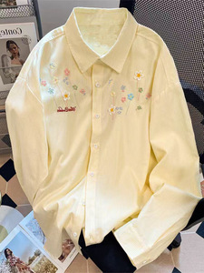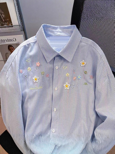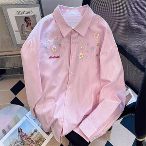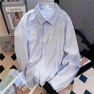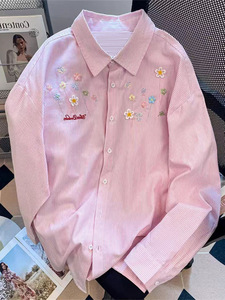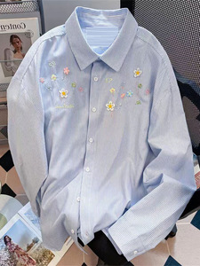 刺绣条纹衬衫外套女款叠穿上衣早秋春装宽松休闲防晒开衫衬衣外搭