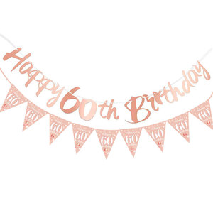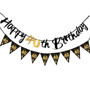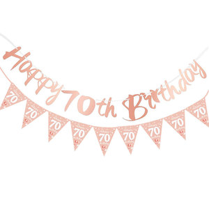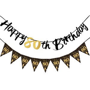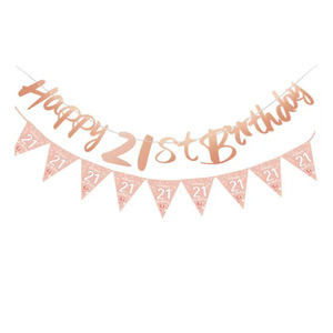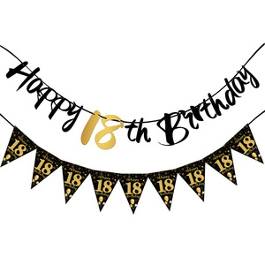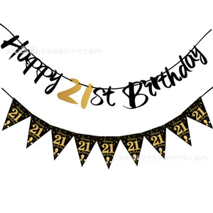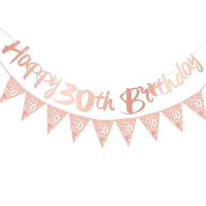 黑金30岁生日派对数字横幅拉旗三角旗 玫瑰金生日拉旗三角旗