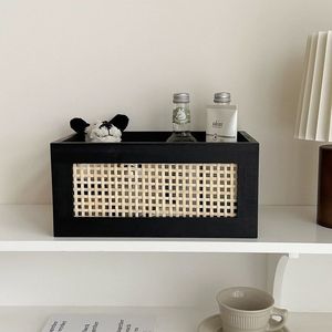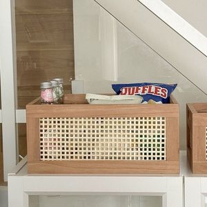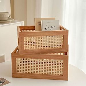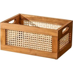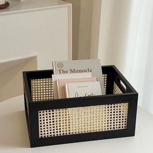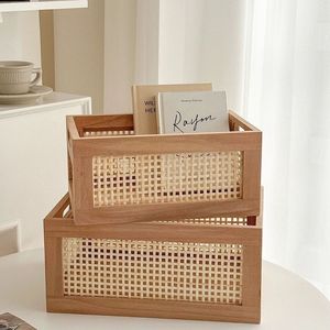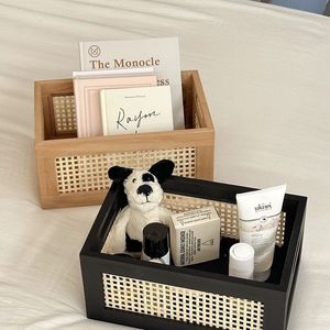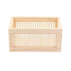 藤编实木收纳筐桌面收纳篮零食盒杂物化妆品收纳筐储物整理收纳盒