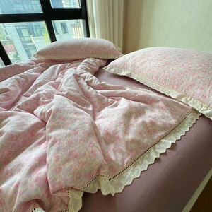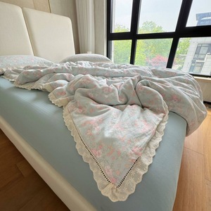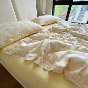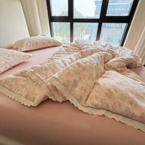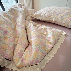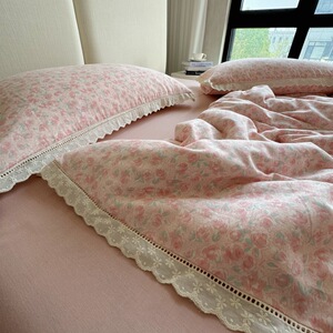 法式小碎花全棉双层纱四件套韩式纯棉花边被套床笠1.8m床品三件套