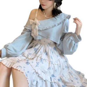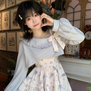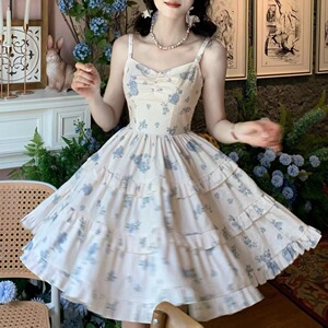 蔷薇碎花吊带裙清新斜肩套装日系毛衣甜美新款两件显瘦蓬蓬连衣裙