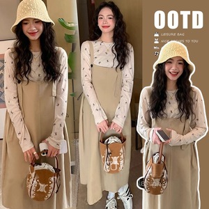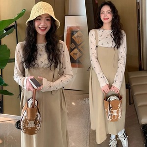 孕妇装秋套装时尚洋气软糯上衣潮妈A字背带连衣裙时髦两件套春装