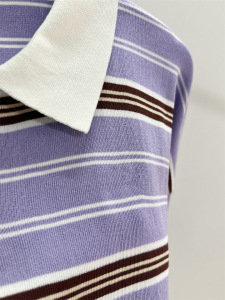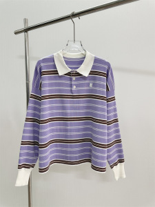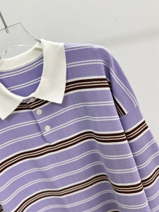 S林法式条纹撞色polo领针织衫复古宽松显瘦长袖上衣显瘦减龄百搭