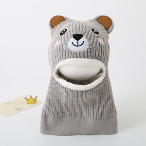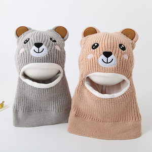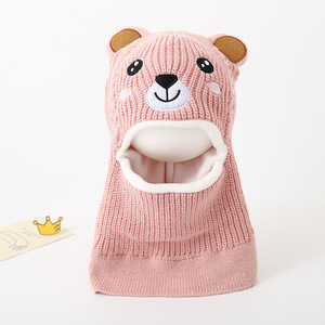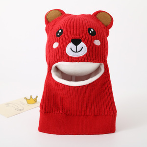 儿童帽子雷锋帽冬季连体围脖圣诞帽可爱小熊护脸针织帽加绒保暖帽