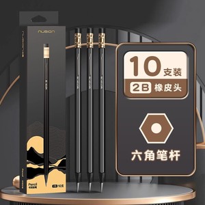 (2B黑金黑木)10支笔/盒自带橡皮头