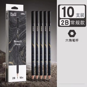 得力绿杆铅笔黑木铅笔六角杆HB/2B小学生初学者绘图素描写字铅笔