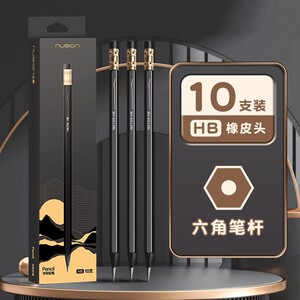 (HB黑金黑木)10支笔/盒 自带橡皮头