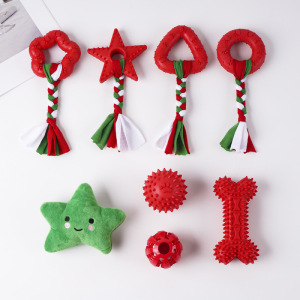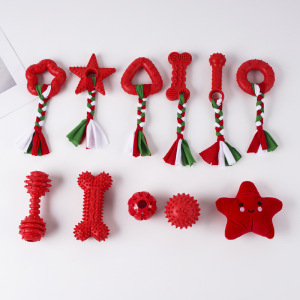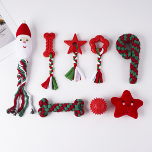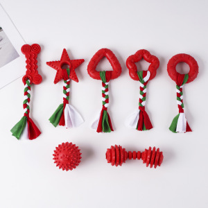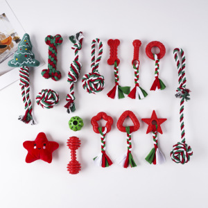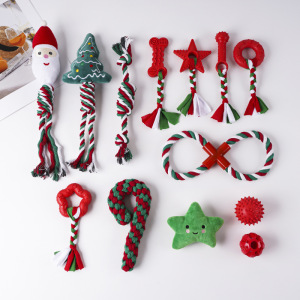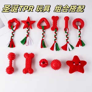 宠物用品跨境狗狗咬胶磨牙棒小型犬布条圣诞绳结解闷狗玩具咬不烂