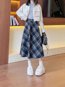 半身裙女秋冬新款美拉德风中长裙高腰显瘦大摆伞裙复古大码长裙子