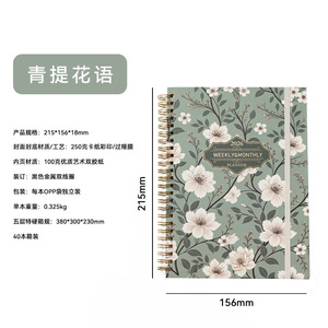 2026款日程本花卉计划本商务办公记事本planner全英文手账本定制