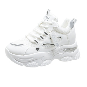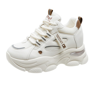 夏季2025季内增高老爹鞋女网面韩版时尚百搭7公分皮面休闲运动鞋