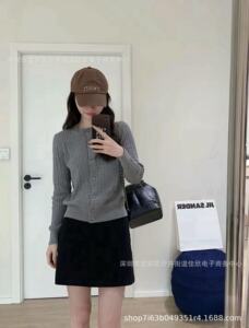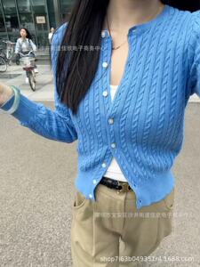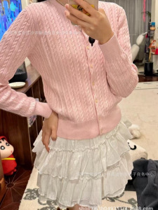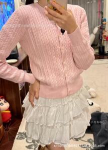 2025秋季新款女大童小马标刺绣圆领小麻花绞花针织开衫女外套