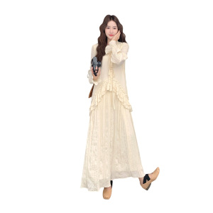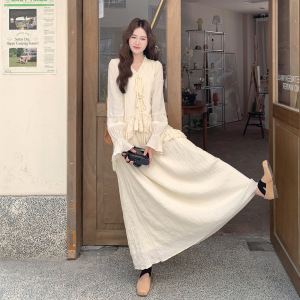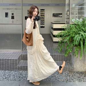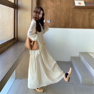 法式设计感假两件连衣裙女长款2025年秋新款收腰时尚气质显瘦长裙