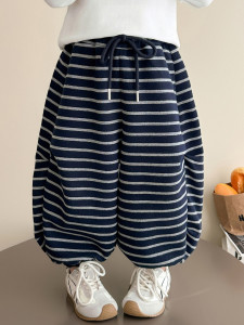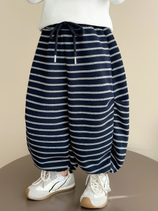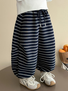 女童秋装条纹运动束脚裤2025新款儿童洋气韩版宽松灯笼裤休闲卫裤