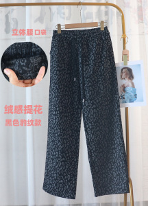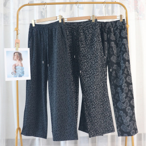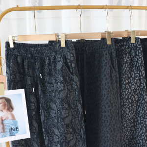 2025秋季新款时尚腰果花阔腿裤女松紧抽绳高腰直筒印花休闲裤气质