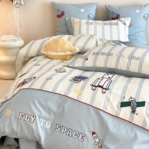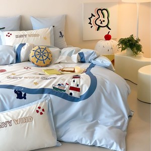 卡通儿童航海刺绣高支澳棉四件套纯棉全棉男孩床上用品浅蓝色