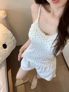 ins夏季纯欲少女卡通吊带短裤睡衣夏天带胸垫2025新款家居服套装