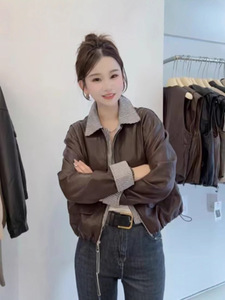 2025秋季新款pu皮衣外套女欧货高端拼接假两件小个子机车短款上衣